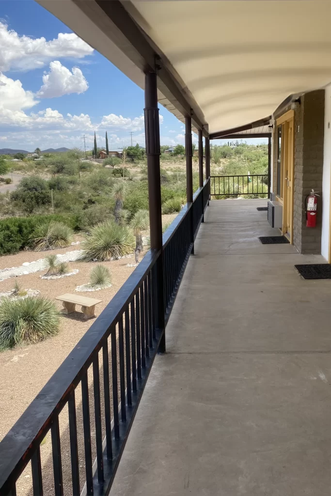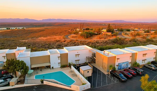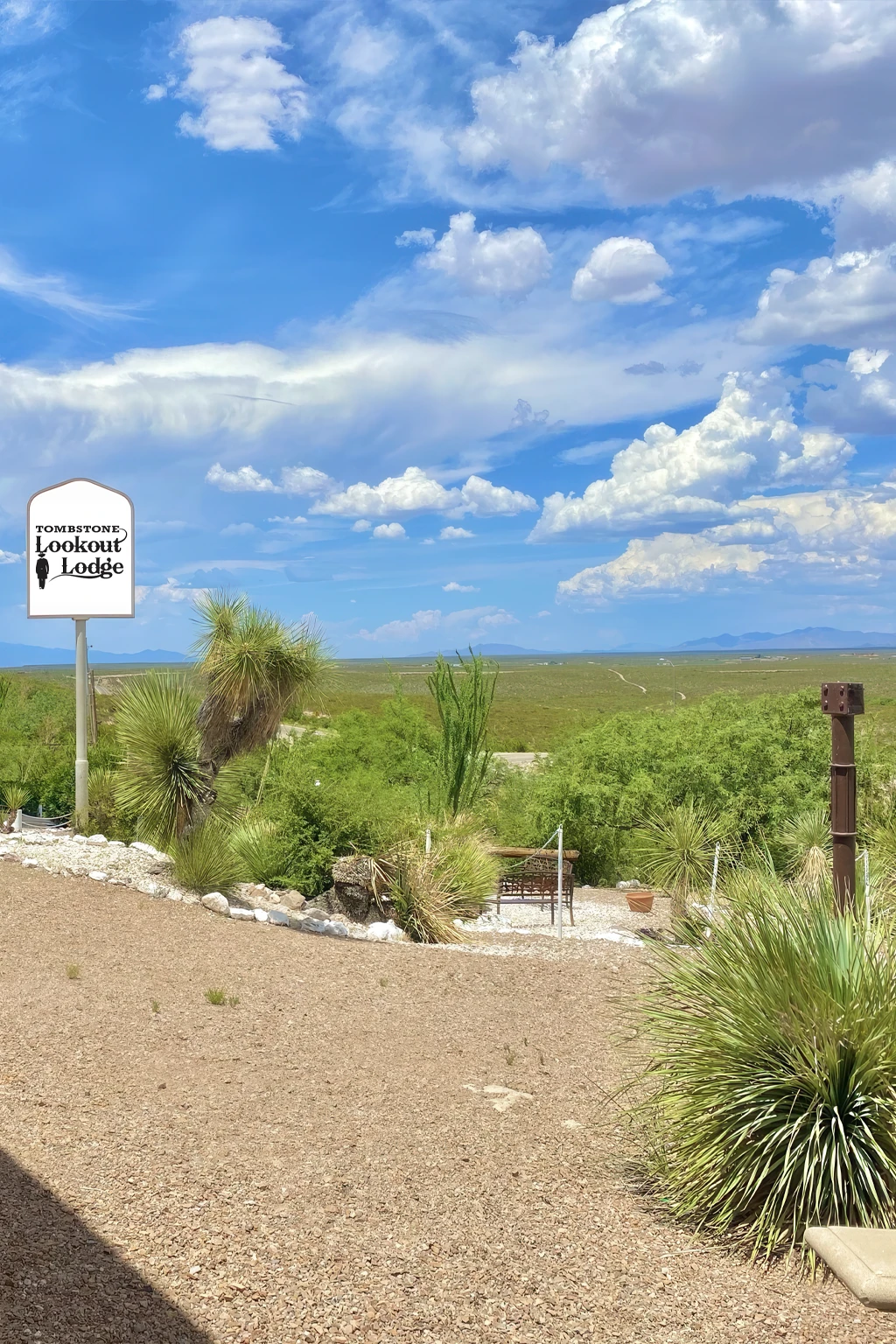 Perched on a hill overlooking the Dragoon Mountains, Landmark Lookout Lodge blends classic Western hospitality with views you won’t find anywhere else in town.
